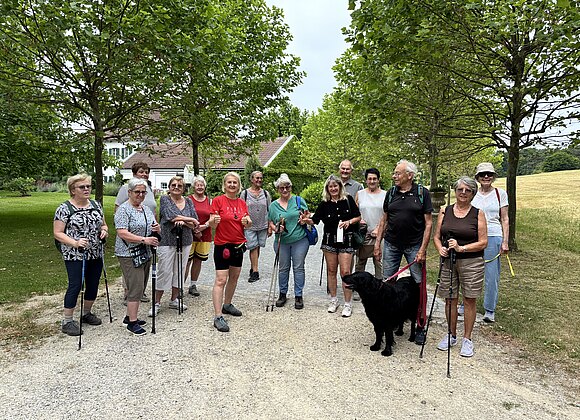 33 Wanderer erkunden bei traumhaften Wetter den Rundwanderweg um die Golfanlage Lengenfeld.